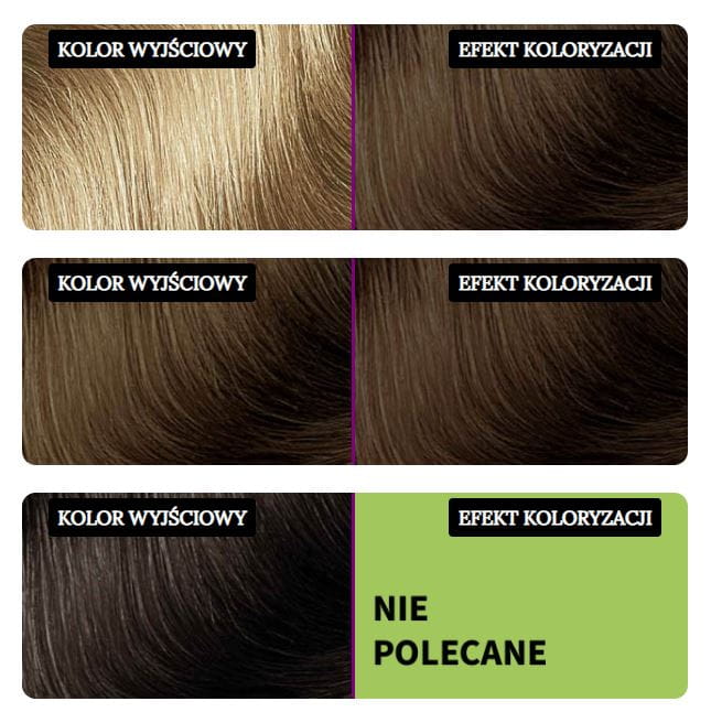 Farba rozjaśnia włosy tylko o jeden ton, weź to pod uwagę przy doborze koloru.
