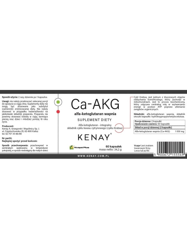 Ca-AKG alfa-ketoglutaran wapnia 60 kapsułek - Kenay