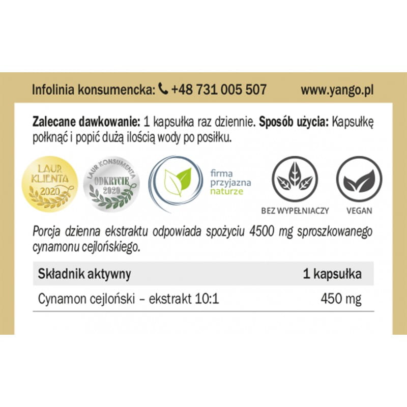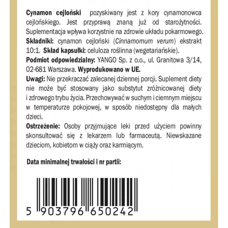 Cynamon cejloński 90 kapsułek roślinnych - Yango