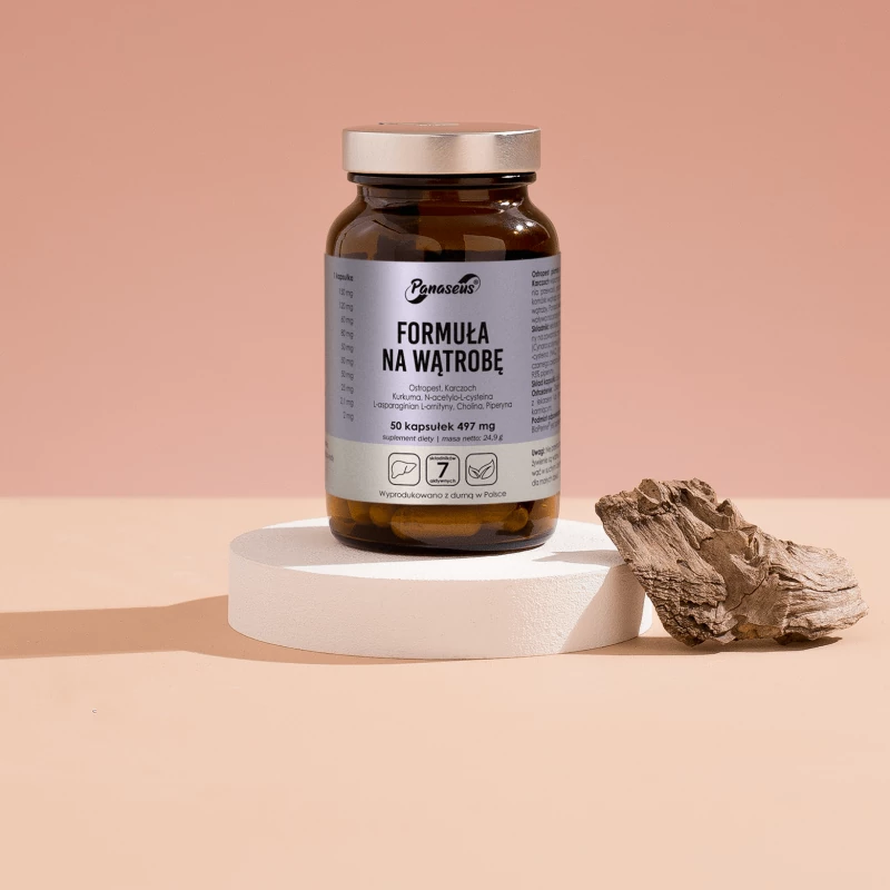Panaseus® Formuła Na Wątrobę to suplement diety w formie łatwych do połknięcia kapsułek roślinnych, zawierający starannie dobrane ekstrakty roślinne i substancje wspierające zdrowie wątroby. Ostropest plamisty i karczoch, znane ze swoich właściwości ochronnych, wspomagają regenerację i prawidłowe funkcjonowanie tego narządu. Kurkuma i piperyna dodatkowo wspierają trawienie i metabolizm tłuszczów, ułatwiając ich przyswajanie i eliminację nadmiaru z organizmu.