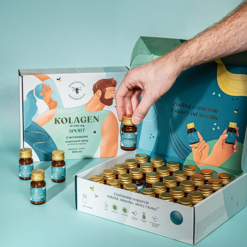 Dla tych, którzy uprawiają sport, dla tych, którym nie brakuje codziennej aktywności i dla tych, którzy dbają o kondycję mięśni i stawów - mamy doskonały Kolagen 10 000 mg Sport z witaminami i mleczkiem pszczelim! To wspaniała kompozycja najwyższej jakości hydrolizowanego kolagenu wołowego, pszczelej mocy prosto z ula w postaci mleczka pszczelego oraz witamin, które wzbogacają kolagen dla aktywnych! Codzienny, szybki shot dla wsparcia pracy stawów (chrząstki), kości i mięśni zadba o Twoje samopoczucie, gotowość treningową i tę do zmagania się z codziennymi wyzwaniami fizycznymi!