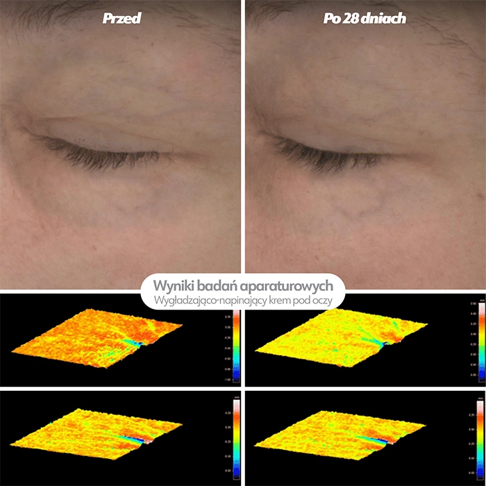 Jego starannie opracowana formuła sprawia, że skóra wokół oczu staje się wyraźnie gładsza, nawilżona i miękka, dając efekt „wypoczętego” spojrzenia – potwierdzony przez 86% badanych. Regularne stosowanie zapewnia skórze intensywne nawilżenie zauważone przez 95% badanych, oraz redukcję zmarszczek mimicznych, co potwierdza 81% probantów.