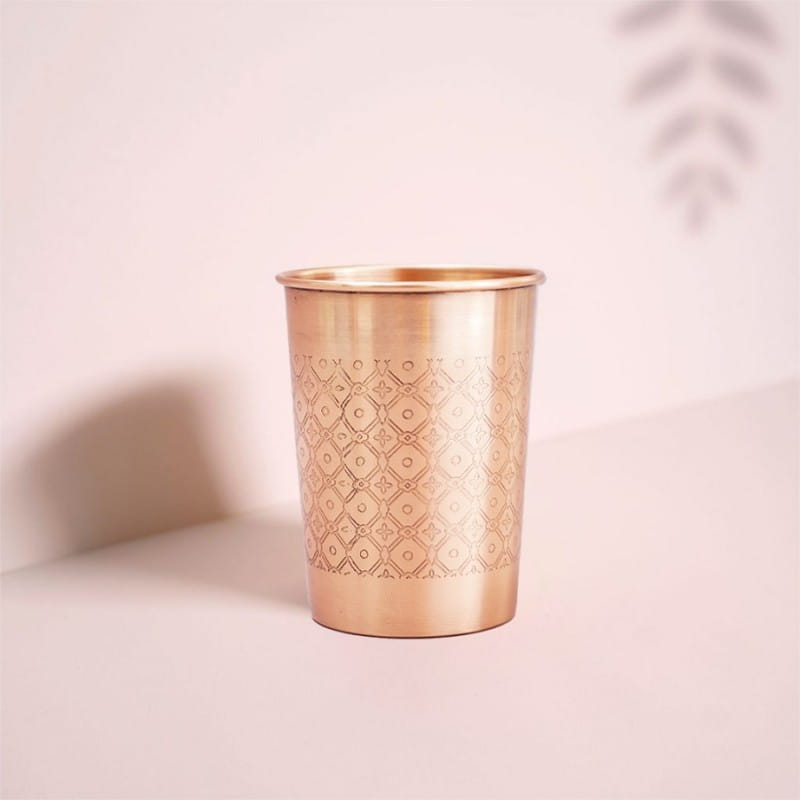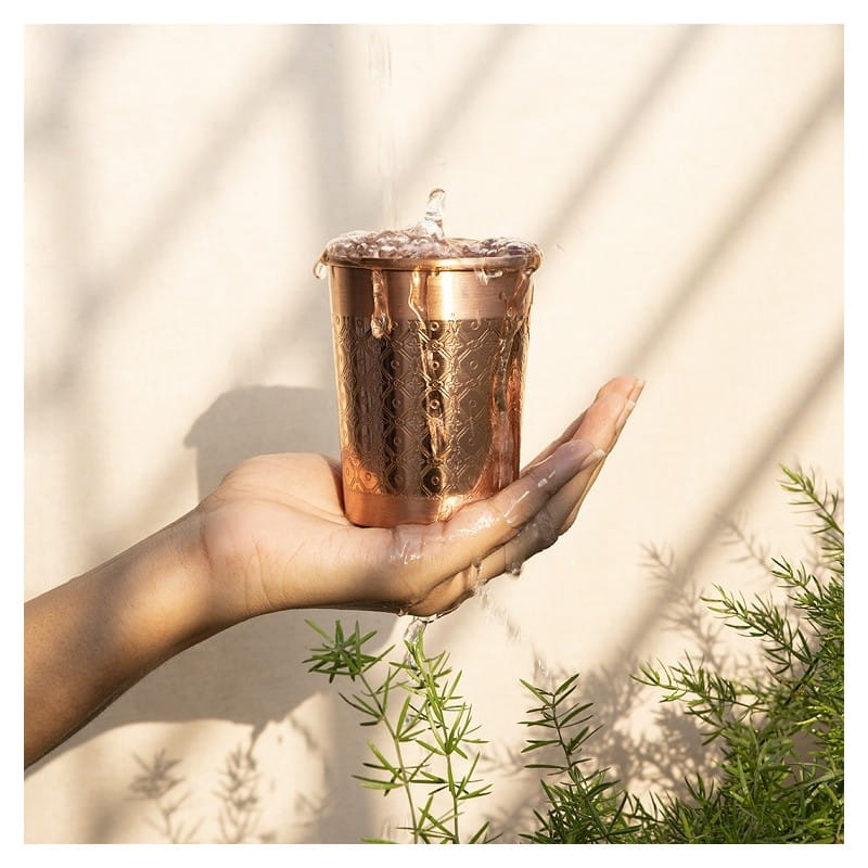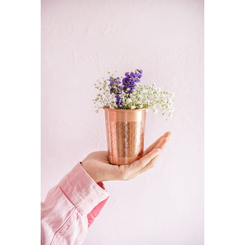 Rozkoszuj się wodą, jakby serwowaną w królewskim indyjskim pałacu! Miedziane kubki, wykonane ręcznie i z perfekcją, wniosą do Twojego codziennego życia dodatkowe poczucie wyrafinowania. Powitaj swoich gości serdecznym i pełnym witalności gestem, serwując im wodę w kubku z czystej miedzi. Kubki miedziane są bardzo trwałe i będą Ci służyć przez całe życie.