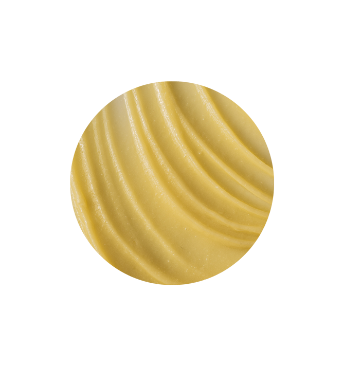 - wosk pszczeli - nadaje pięknej, maślanej konsystencji. Działa natłuszczająco i ochronnie, zapobiega wysuszaniu skóry,
