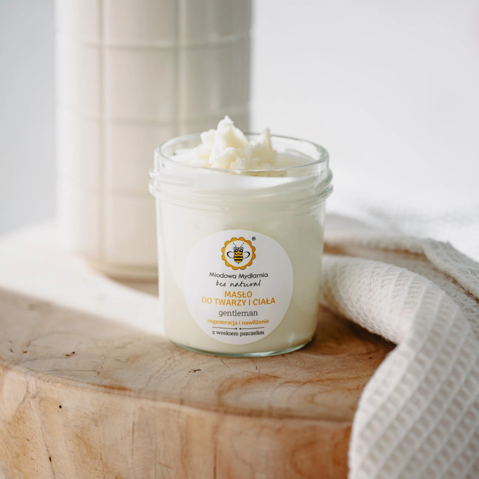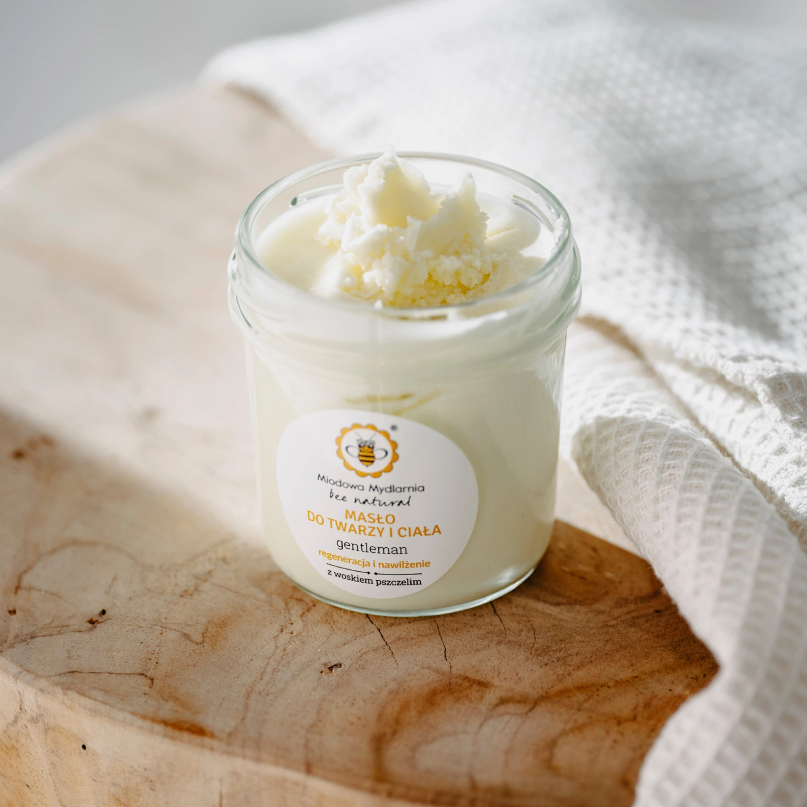 Gentleman Bee Natural to odżywczo-kojące masło do twarzy i ciała z woskiem pszczelim. Posiada męski, dodający energii zapach, a także lekką puszystą konsystencję musu.