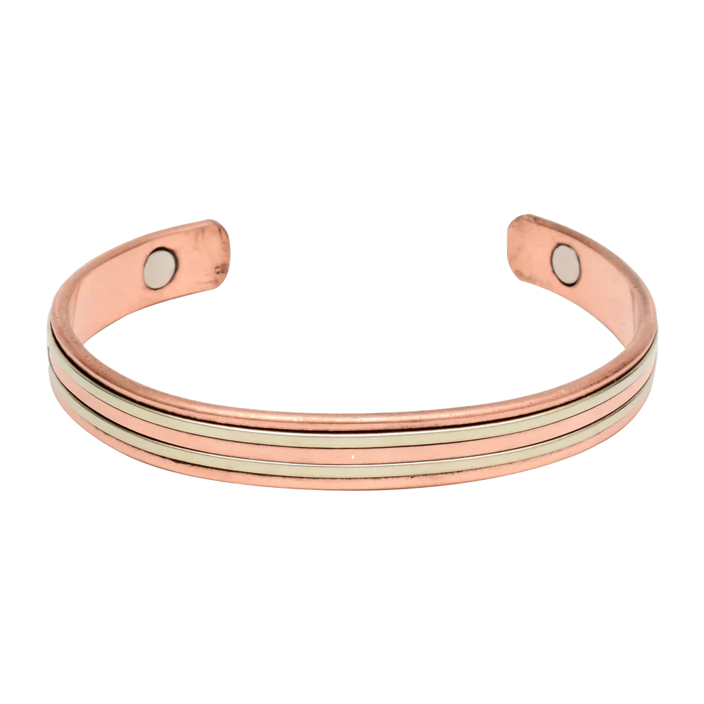 Elegancka i tradycyjnie wykonana miedziana bransoletka z delikatnym grawerowanym wzorem i wbudowanymi magnesami. Wykonana z wysokiej jakości miedzi, łączy w sobie piękno biżuterii z prozdrowotnymi właściwościami, inspirowanymi Ajurwedą.