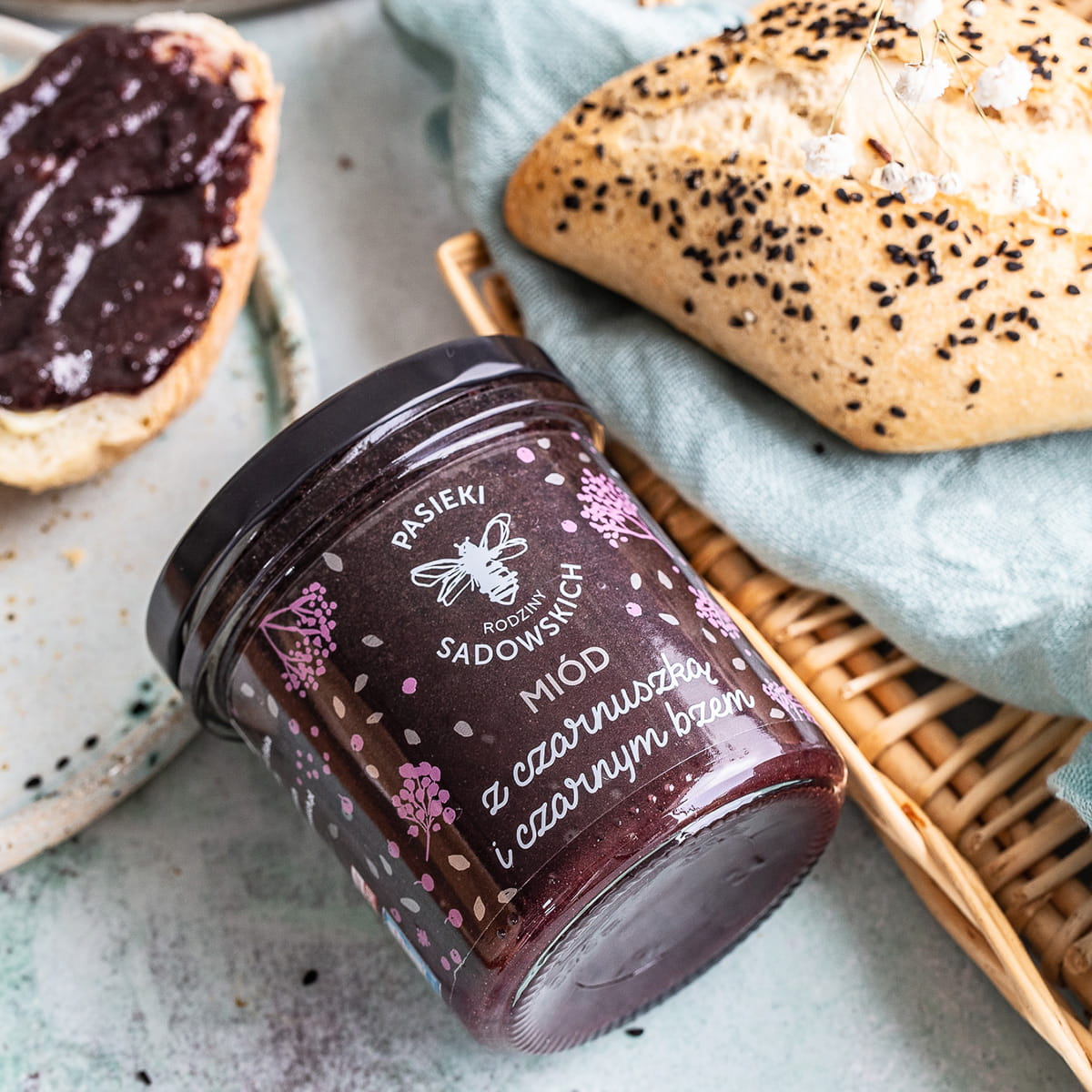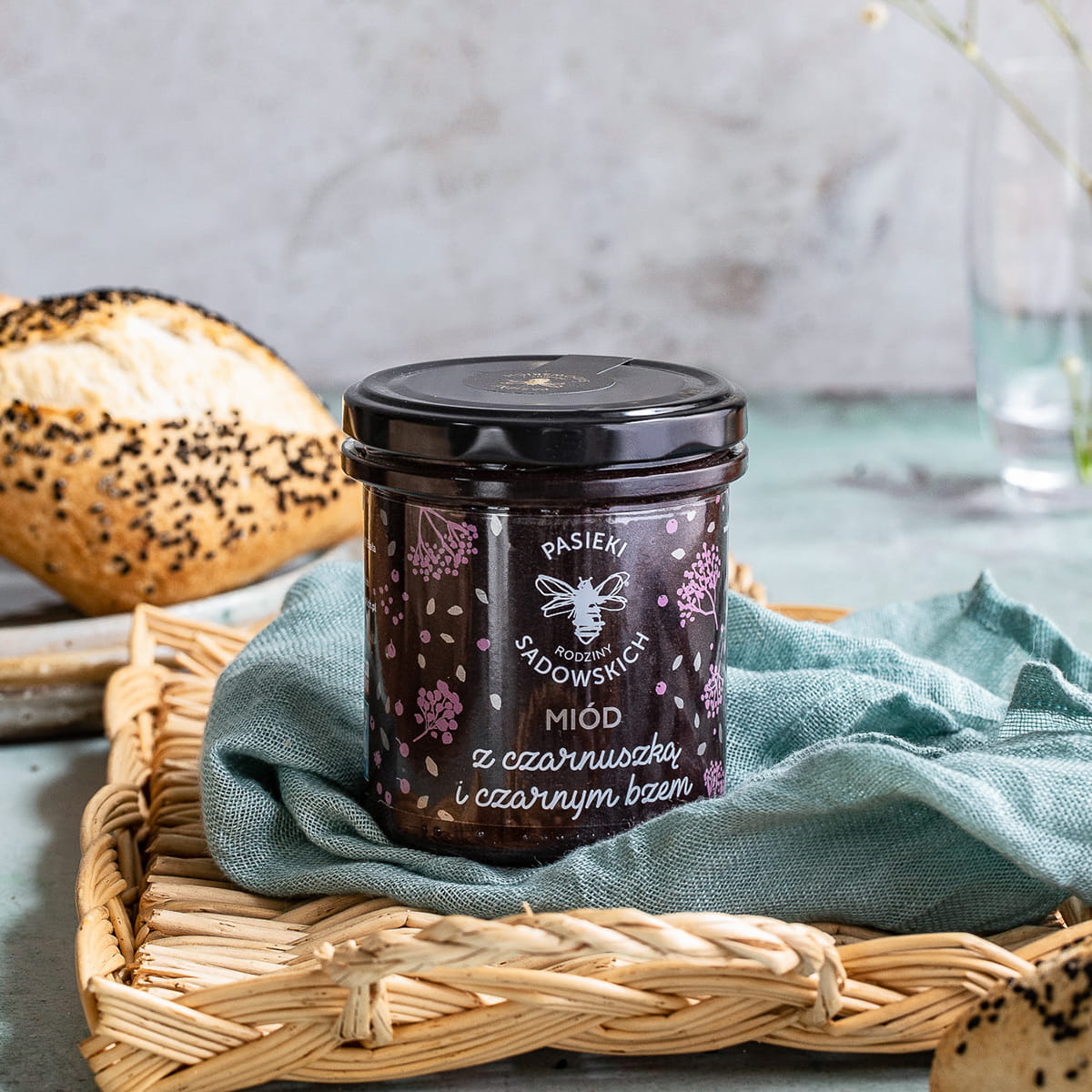 Miód z czarnuszką i czarnym bzem 430 g - Pasieki Rodziny Sadowskich