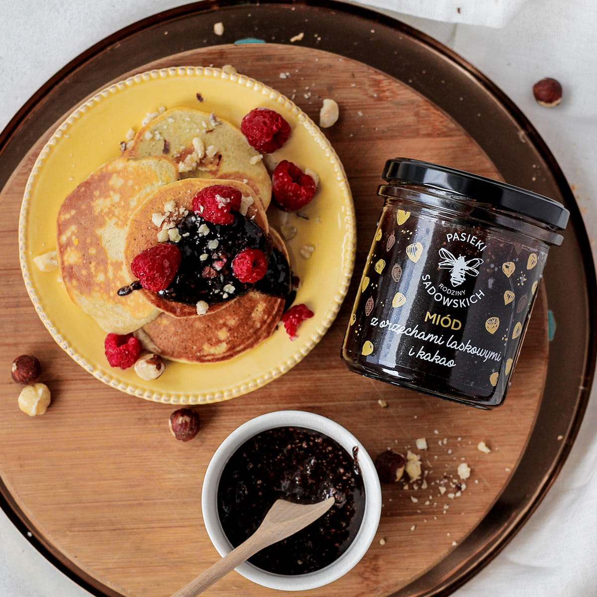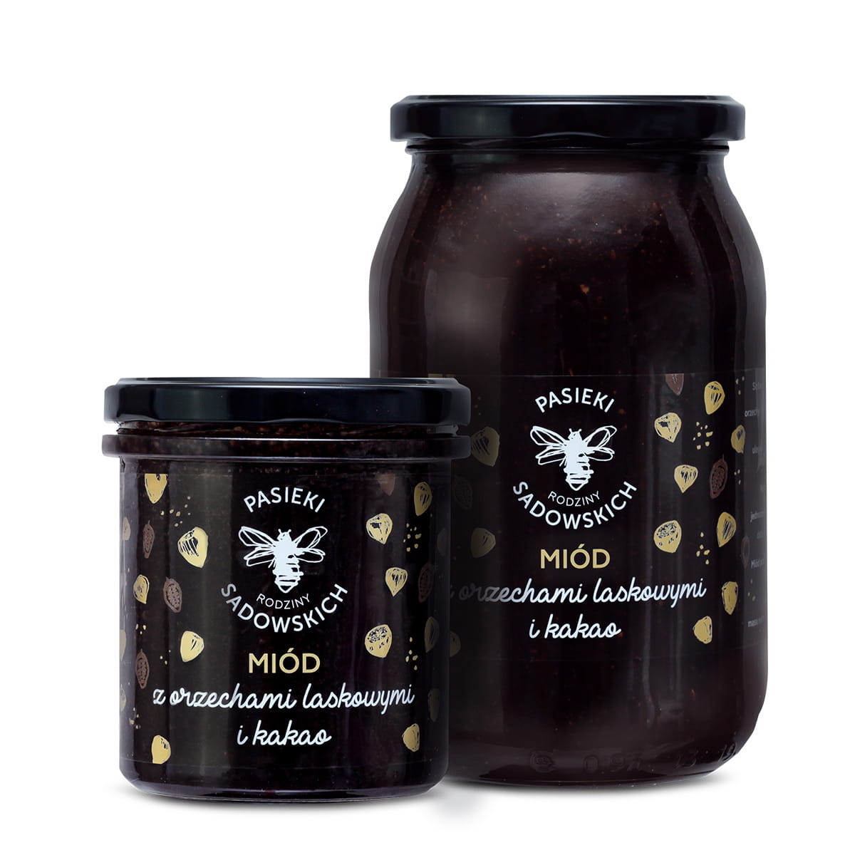 Miód z orzechami laskowymi i kakao 410 g - Pasieki Rodziny Sadowskich