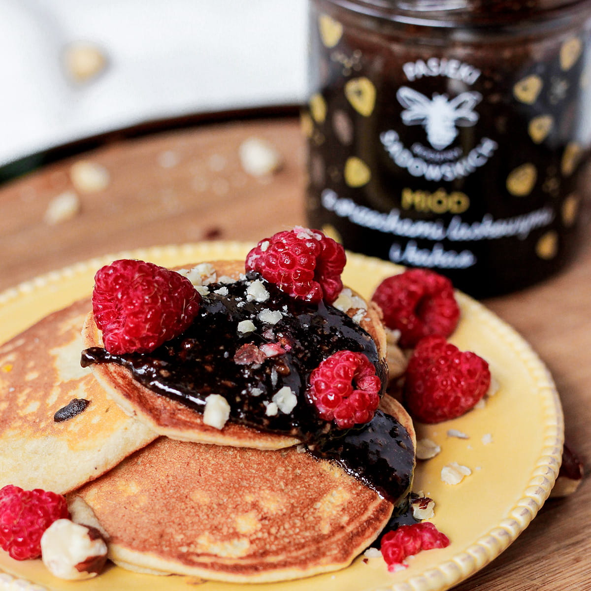Zdrowe słodycze - kto o nich nie marzy? Oto alternatywa dla kremów czekoladowo-orzechowych, którą możemy jeść ze spokojnym sumieniem. Miód z dodatkiem naturalnego kakao został wzbogacony o orzechy laskowe. Teraz można jeść i chrupać orzechy jednocześnie - na naleśnikach, pankejkach, kanapkach lub prosto ze słoika. Dzieci uwielbiają miód z kakao i orzechami laskowymi. Podaj jako zdrowy deser i pokaż swojej rodzinie, że zdrowe może być pyszne.