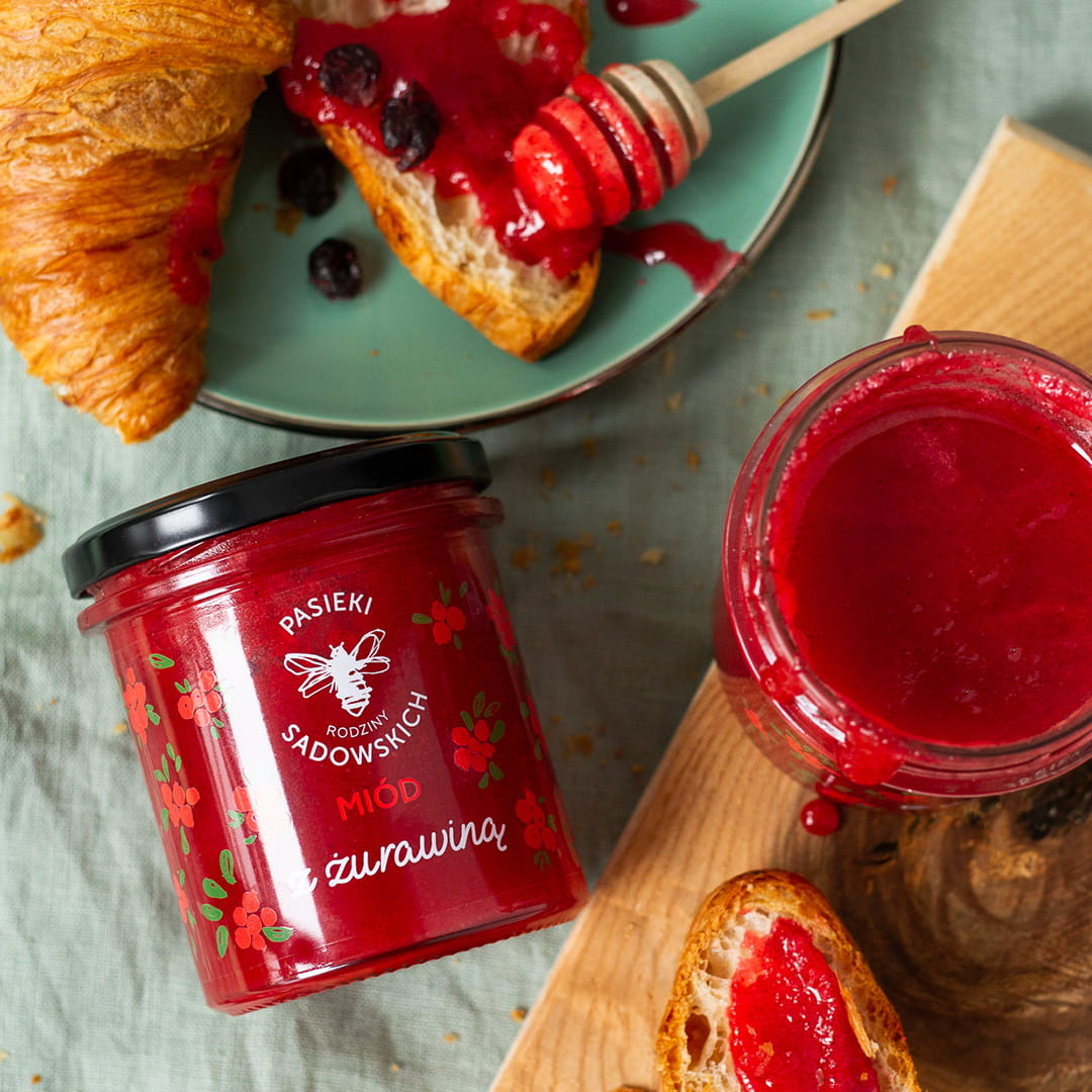 Miód z żurawiną 430 g - Pasieki Rodziny Sadowskich