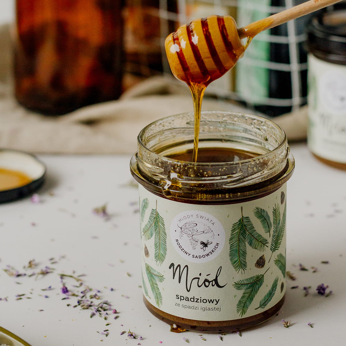 Miód ze spadzi iglastej 450 g - Pasieki Rodziny Sadowskich