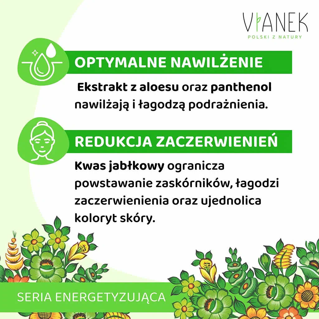Zawarty w toniku ekstrakt ze skrzypu polnego reguluje produkcję sebum i przyspiesza regenerację zmian skórnych, z kolei ekstrakt z aloesu posiada właściwości łagodzące i nawilżające. W składzie znajduje się też kwas AHA jabłkowy, który zmniejsza powstawanie zaskórników i niweluje nadmierne rogowacenie. Normalizujący tonik jest wzbogacony o olejek miętowy, który nie tylko odświeża skórę, ale też przywraca jej równowagę.