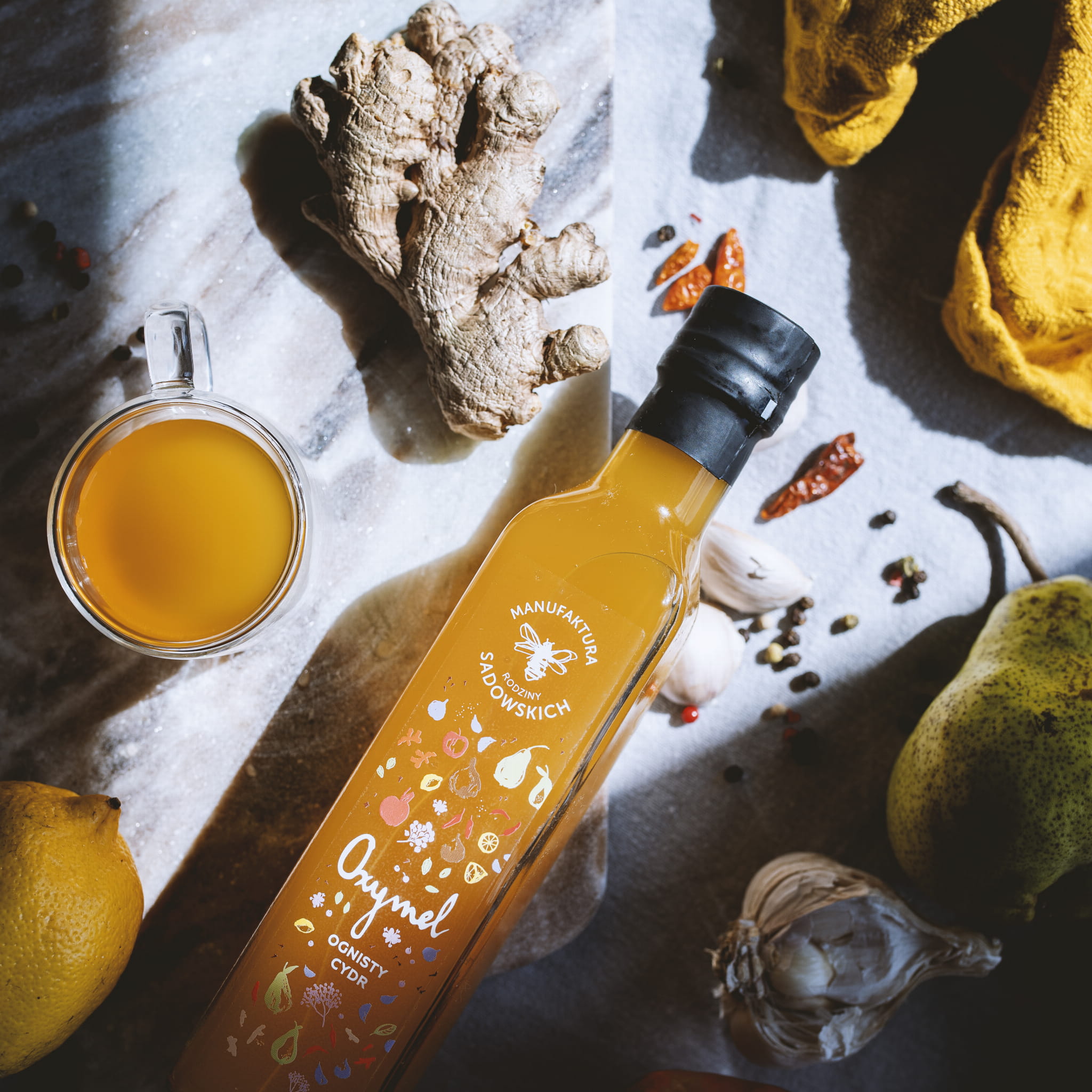 Oxymel - to z łaciny oxy - ocet, oraz miel - miód. Ocet z miodem, czy może być lepiej? Otóż może: w occie macerujemy warzywa i przyprawy w powolnym procesie, aby wyciągnąć z nich to, co dla zdrowia najlepsze. W efekcie otrzymujemy ognisty w smaku, mocarny w działaniu i aż gęsty od naturalnej dobroci oxymel.