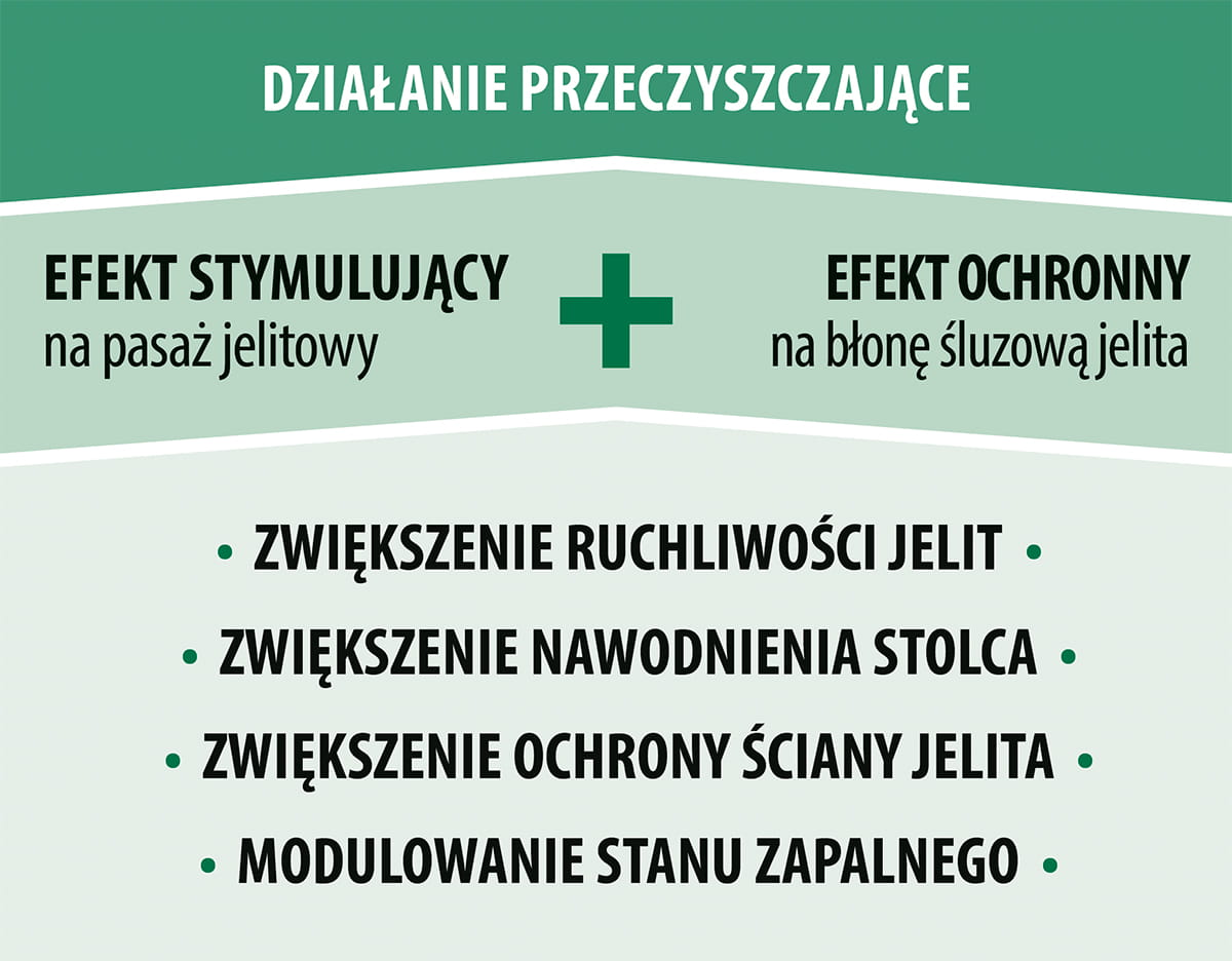 Kompleks Sollievo PhysioLax otrzymywany z senesu wąskolistnego, cykorii podróżnik, kopru włoskiego, mniszka lekarskiego, kminku zwyczajnego i kminu rzymskiego