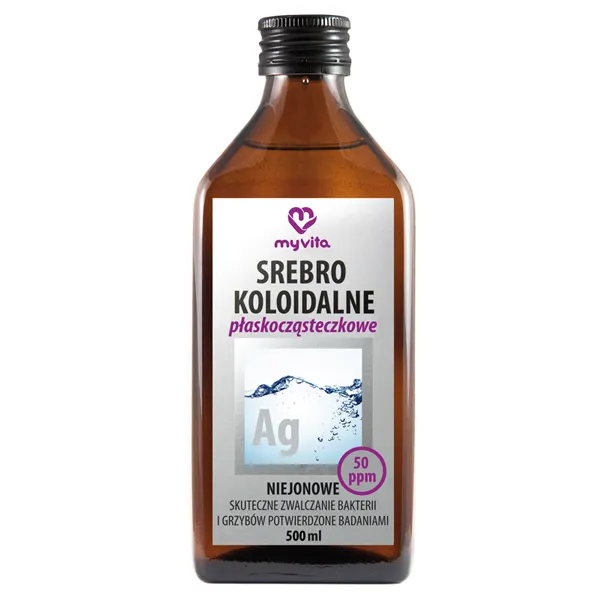 Srebro koloidalne płaskocząsteczkowe niejonowe 50 ppm 500 ml - MyVita