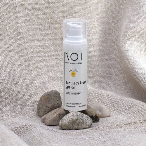 Krem tonizujący KOI daje bardzo wysoką skuteczność przed promieniowaniem UVA, UVB oraz światłem HEV i IR. Zapewnia najwyższy poziom ochrony przed promieniowaniem UVB, które jest odpowiedzialne za poparzenia słoneczne. Istotną rolę odgrywa też blokada niszczącego działania promieni UVA. Są one bardzo zdradliwe, gdyż ich działania nie odczuwamy bezpośrednio (nie opalają), ale docierają one nawet do skóry właściwej. Głównym efektem nadmiernej ekspozycji na słońce jest uszkodzenie komórek, w tym ich DNA. Przyczynia się do tego stres oksydacyjny wywołany zbyt dużą ilością wolnych rodników. Następstwem tego wszystkiego jest fotostarzenie, które powoduje destrukcyjne zmiany w wyglądzie, strukturze i funkcjonowaniu skóry. Tonujący krem z SPF 50 blokuje aż 98% promieni docierających do skóry. To nowoczesny krem ochronny zawierający kompozycję filtrów naturalnych i bezpiecznych filtrów organicznych.