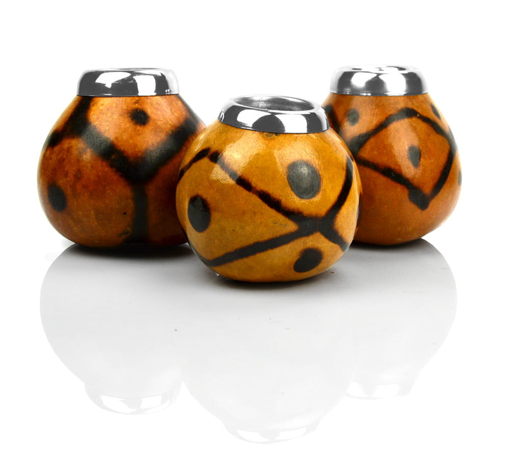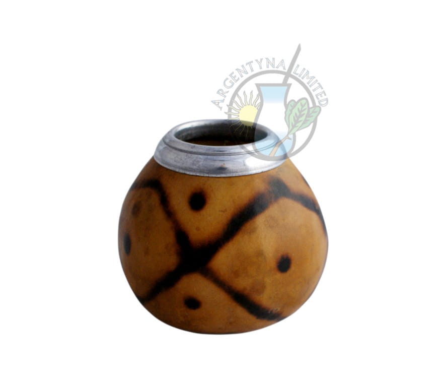 Tradycyjne argentyńskie naczynie do yerby wykonane z owocu tykwy. Brązowe, zdobione we wzory, otwór okala metalowy pierścień, który posiada funkcję praktyczną (spina i usztywnia naczynko), a także estetyczną.