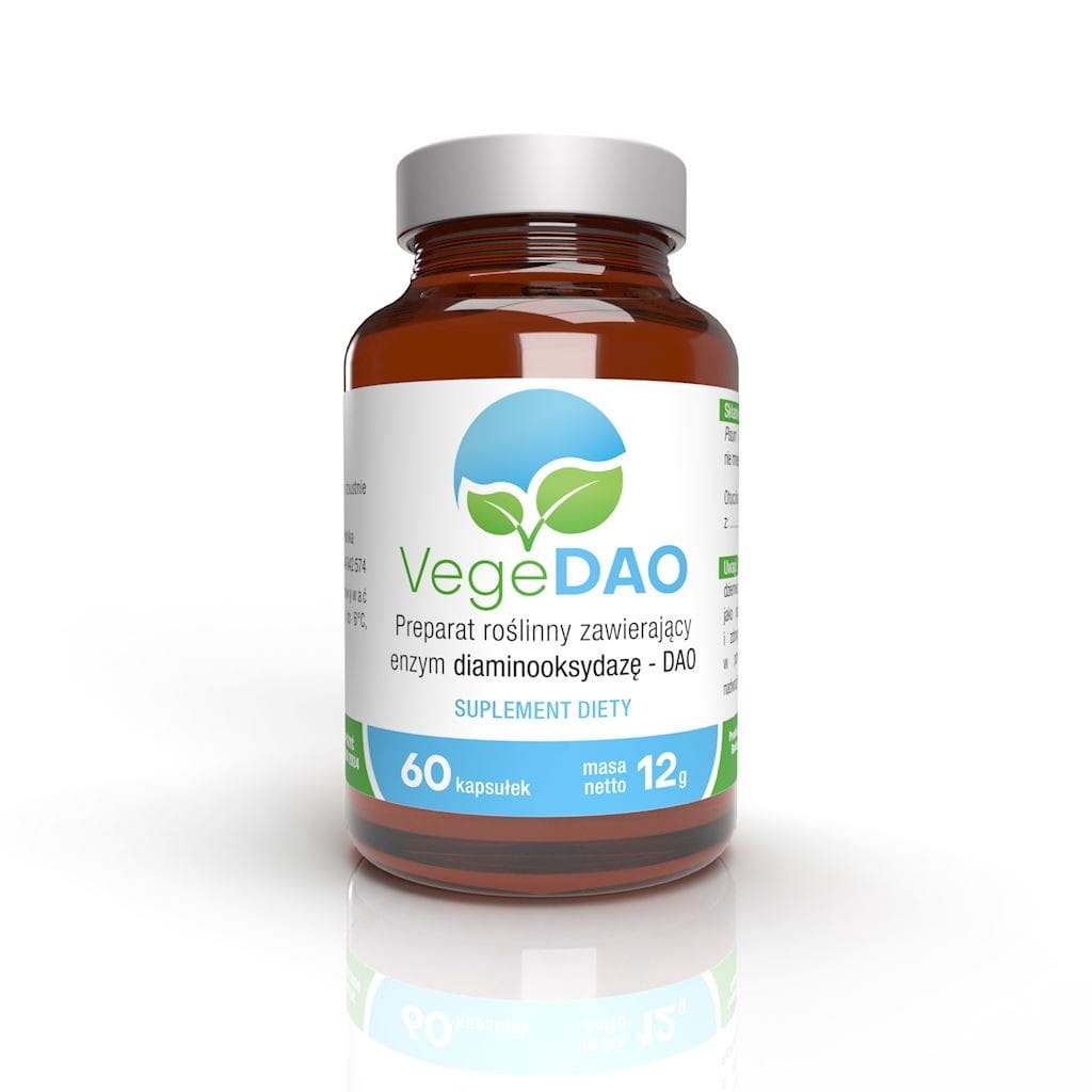 VegeDAO to suplement diety na bazie liofilizatu z kiełków grochu Pisum sativum, który odpowiada za źródło cennych składników odżywczych, witamin, minerałów i enzymów wzmacniających potencjał oksydacyjny organizmu. Jest on również obfitym źródłem enzymu diaminooksydazy - DAO.