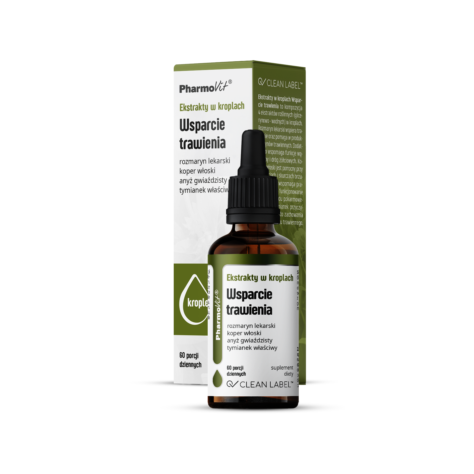 Wsparcie trawienia Ekstrakty w kroplach rozmaryn, koper włoski, anyż, tymianek 30 ml - PharmoVit