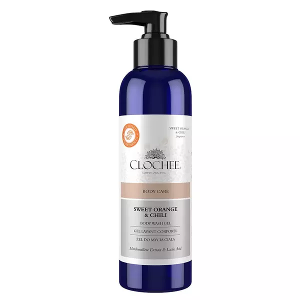 Żel pod prysznic Clochee do codziennego stosowania bazuje na łagodnych i delikatnych dla skóry składnikach, które efektywnie oczyszczają. Aromaterapeutyczne i odświeżające nuty zapachowe słodkiej pomarańczy i chili otulają skórę egzotycznym zapachem.