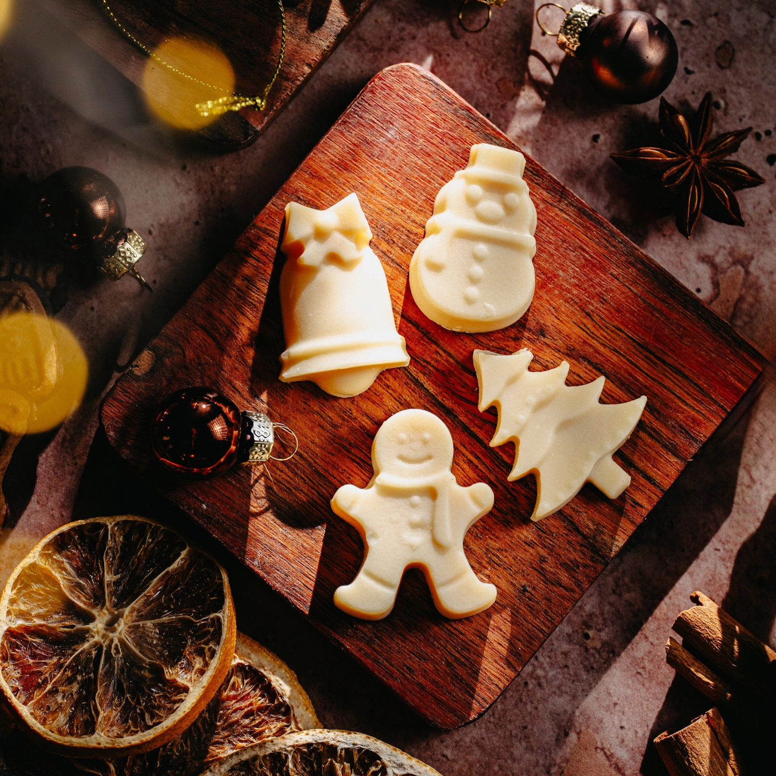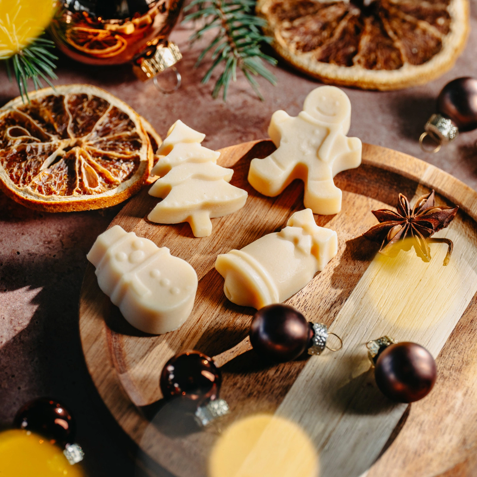 Let it snow to 4 mini naturalne mydełka o kształcie dzwonka, choinki, piernikowego ludzika oraz bałwanka oparte na recepturze mydła Delikatne z Kozim Mlekiem, które zapewnia delikatną pielęgnację skóry.