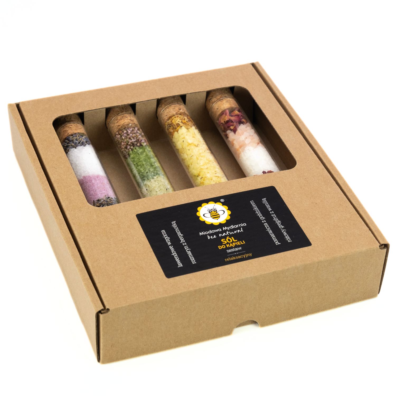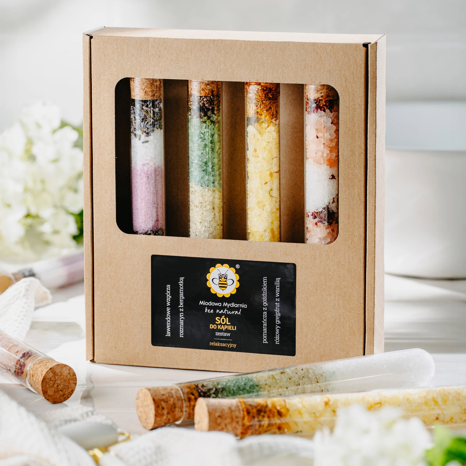 Zestaw soli w fiolkach zestaw relaksacyjny 4 fiolki - Miodowa Mydlarnia